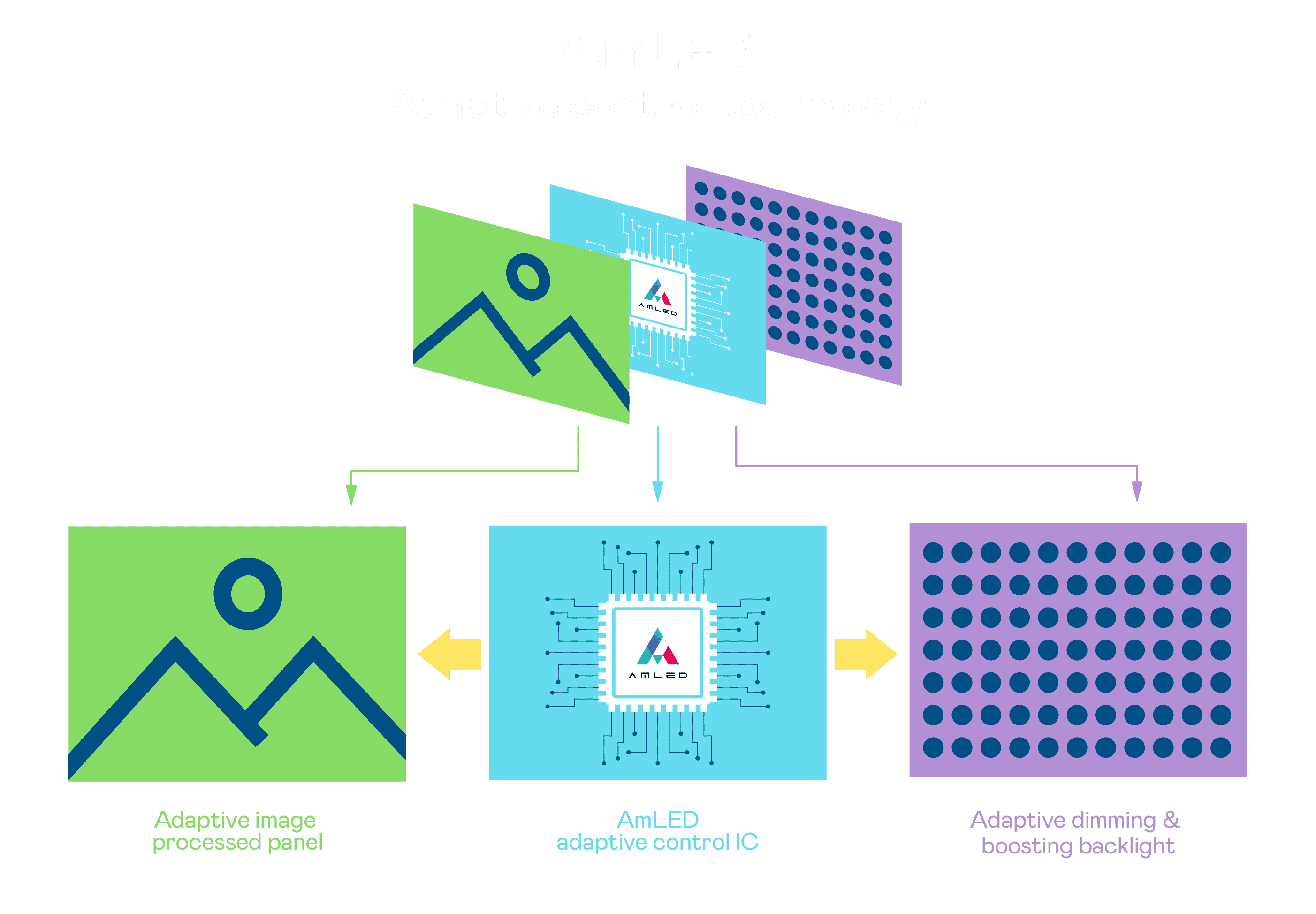 AmLED 具备更省电与低蓝光特性。。。。与一般的 LED 背光显示技术相比,,,由于 AmLED 常时处于局部调光状态,,其功耗仅有前者的 50% 左右,,,同时 AmLED 还具备低蓝光特性,,满足长时间使用的护眼需求。。。