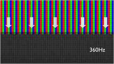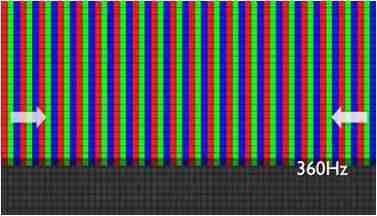 传统液晶驱动是从左到右单向进行,,,,在画面更新速度愈来越愈快的情况下,,位于驱动线路末端的右下角区域,,画素的闸极来不及在短时间内获得足够电压,,,无法显示出正确的颜色资讯。。。。