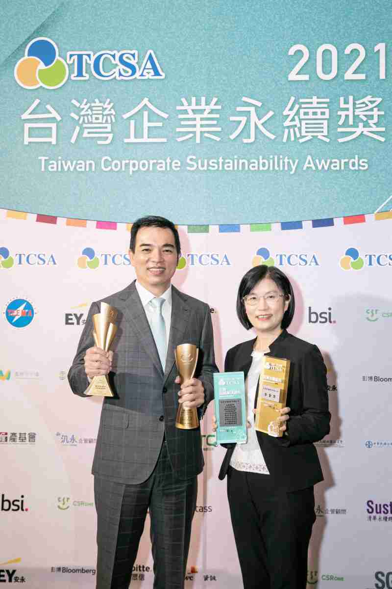 达在台湾永续奖所评比环境、、、社会、、、治理等各面向的永续绩效均获高度肯定 (左:william威廉中文官网光电总经理暨营运长柯富仁,,,,右:william威廉中文官网光电永续长古秀华)