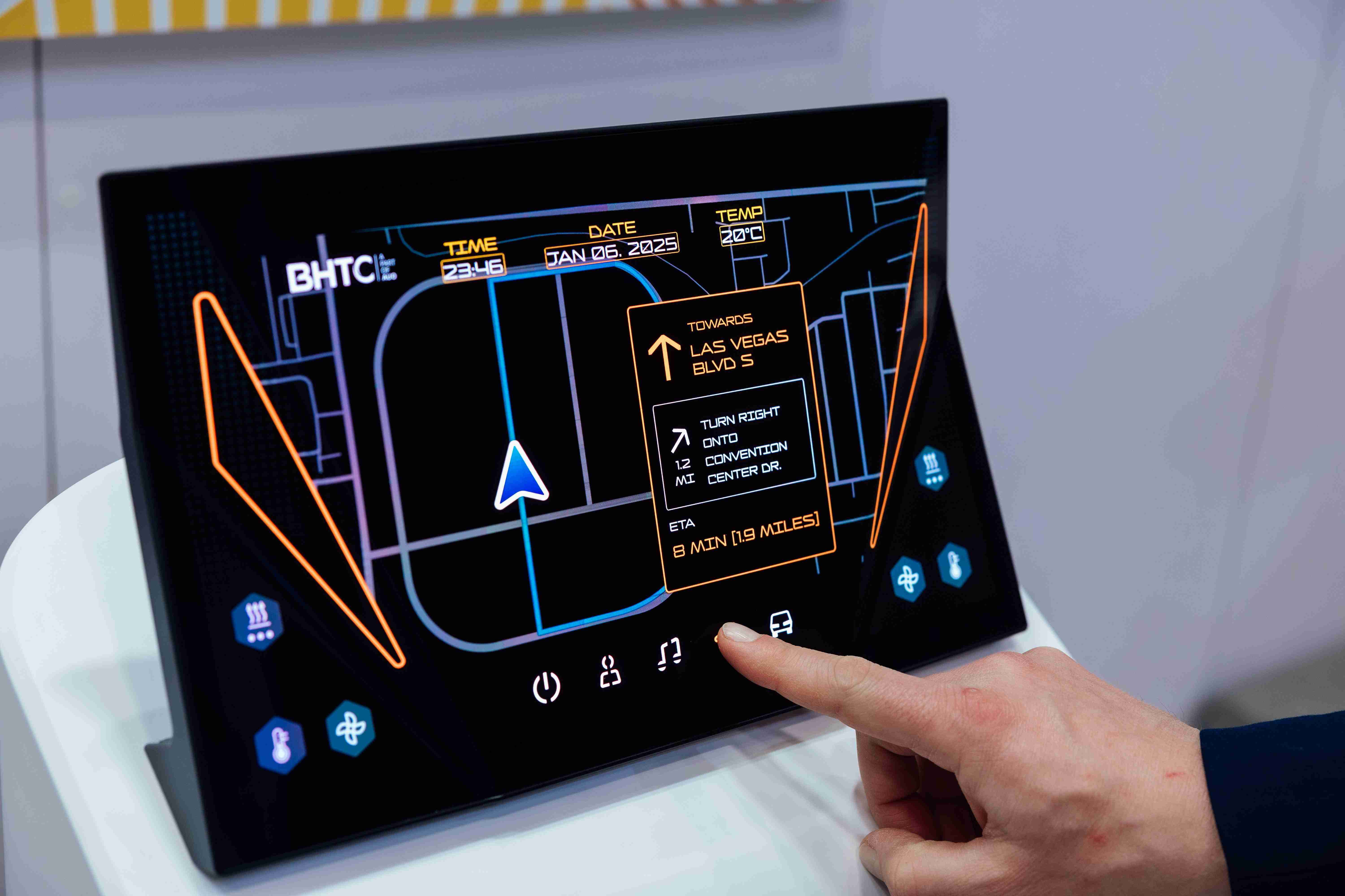 Micro LED可折迭触控显示器(Haptifold Display)结合BHTC多年HMI设计经验,,,整合中控台和温度控制功能,,,以优美的曲面和独特的外型助力车内设计美学,,,在辅以触控回馈下,,,为驾驶带来更直觉的使用体验。。
