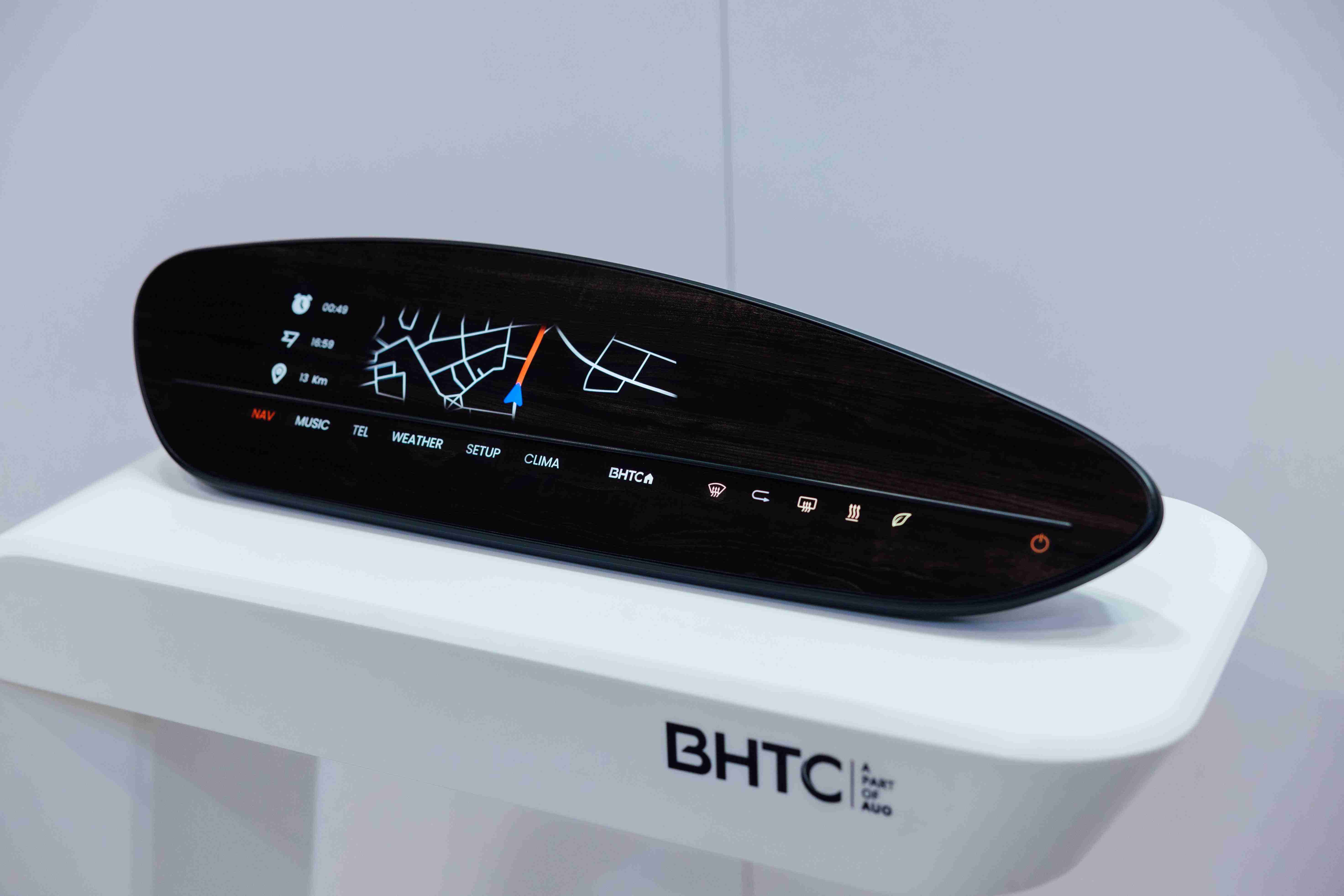 BHTC的木纹车用显示器(Display Behind Wood)将无缝木质表面与显示器结合后,,可以融入车内设计中,,,,提供驾驶优质的视觉效果,,加上其无边框的设计和亮度调控,,,创造更优质的车内体验。。。。