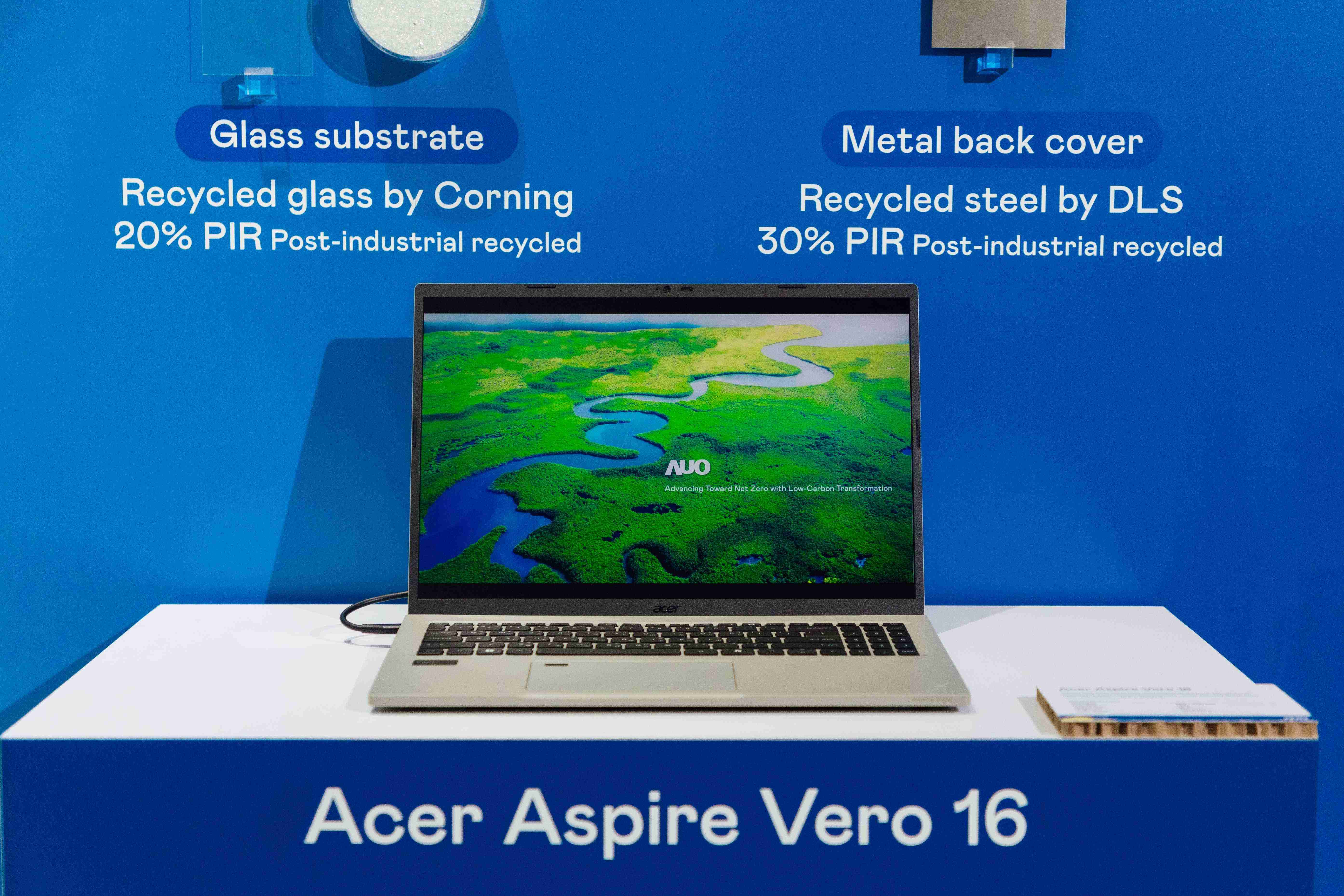 全球首款笔记型电脑采用william威廉中文官网100%绿电制造的面板,,,,结合PCR外亦使用工业后回收材料(PIR),,,例如回收玻璃和金属,,,减少对环境的影响。。。。