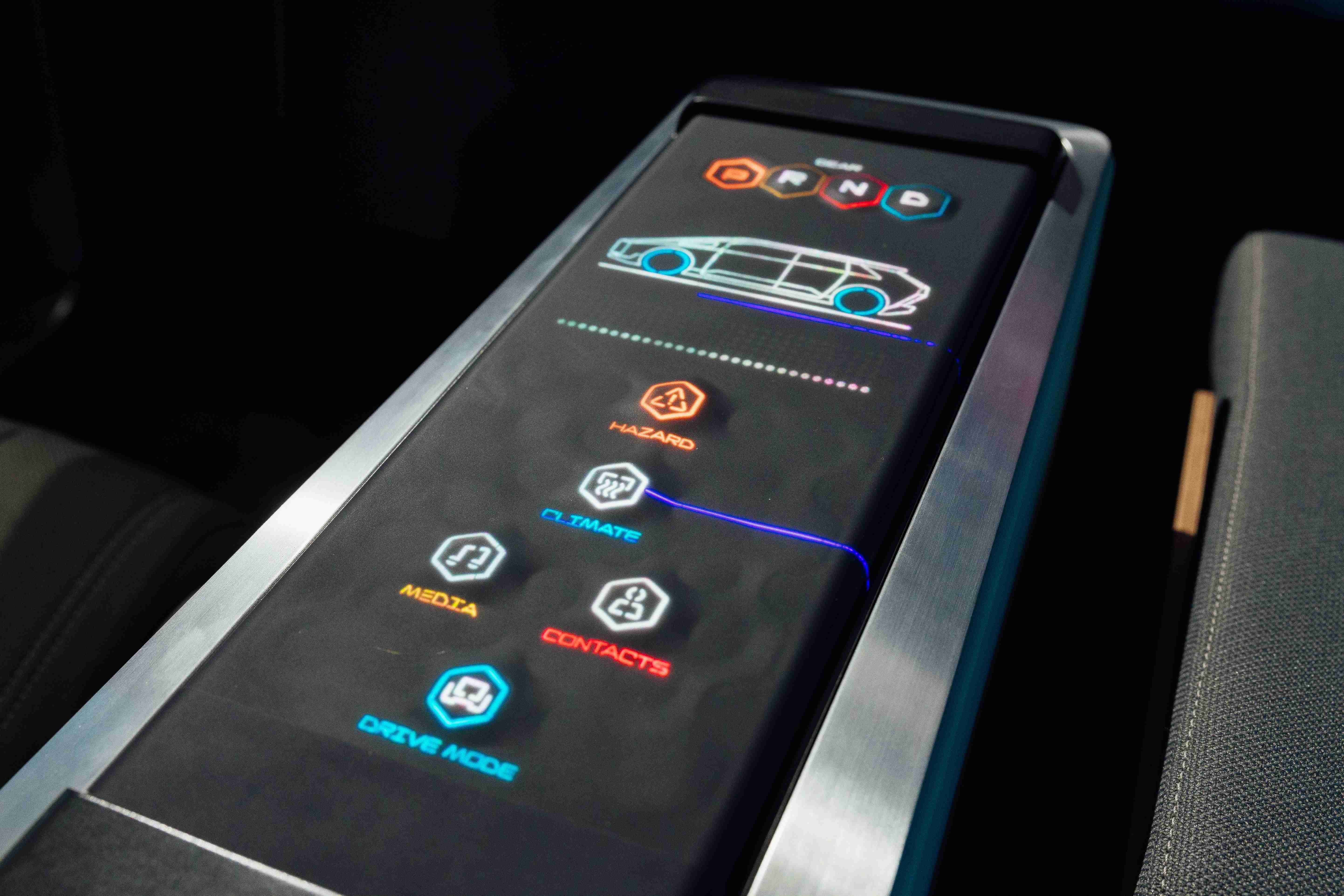 多变形态中控显示(Morphing Center Control)拥有动态变化的表面,,,,平时常态显示车辆功能,,进一步操作时,,,则会隆起成为3D 按钮,,,并在触控时以震动回馈,,以精细的操作开创人机互动新境界。。。。