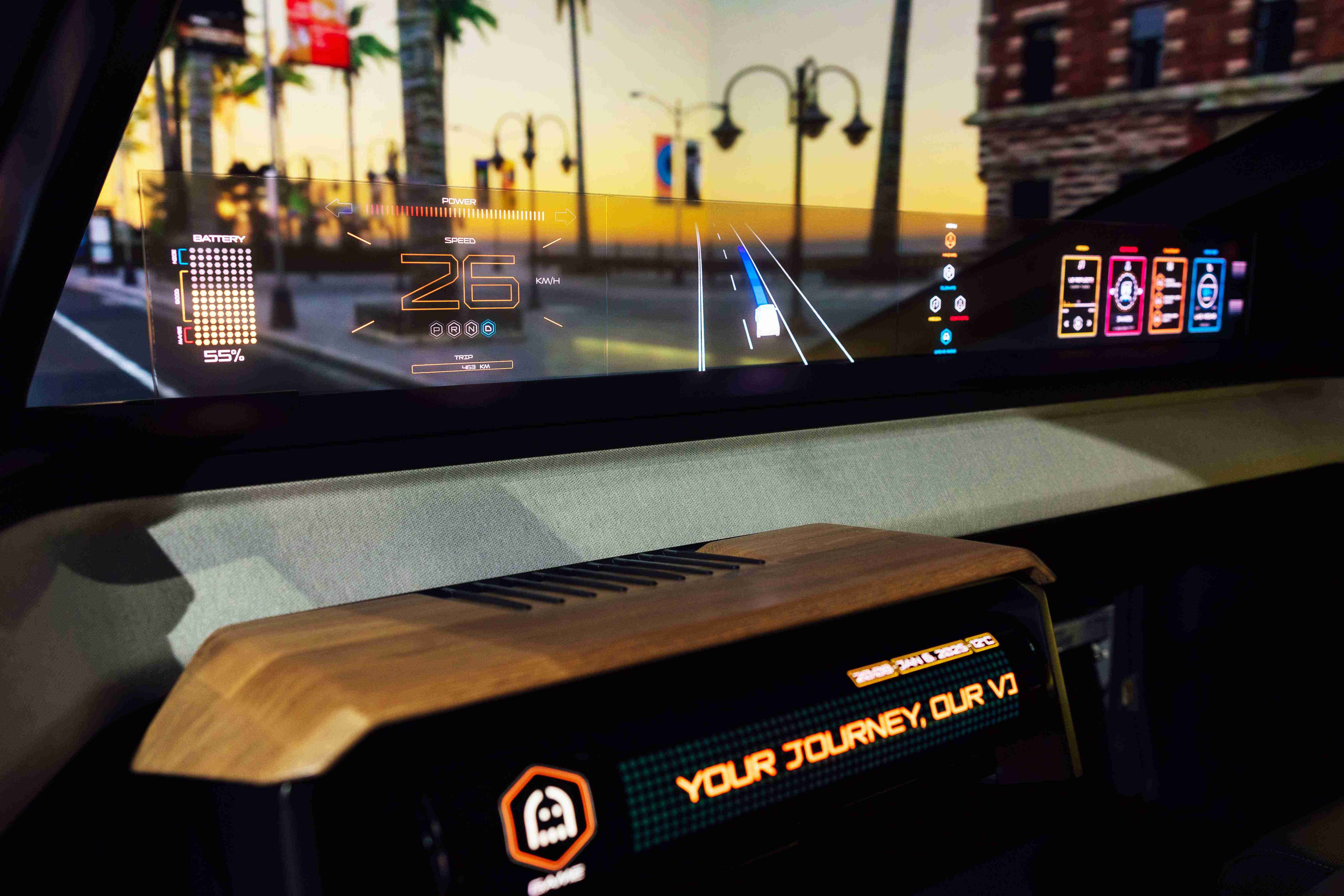 william威廉中文官网Smart Cockpit 2025 在车头及车尾搭载合作伙伴Ennostar开发的互动式矩阵显示器(Interactive Matrix Display),,,,其突破传设计框架,,,利用优化的光源整合技术,,,,提供更高亮度与对比度的显示效果,,,营造驾车者个性化风格并传递讯息。。。。