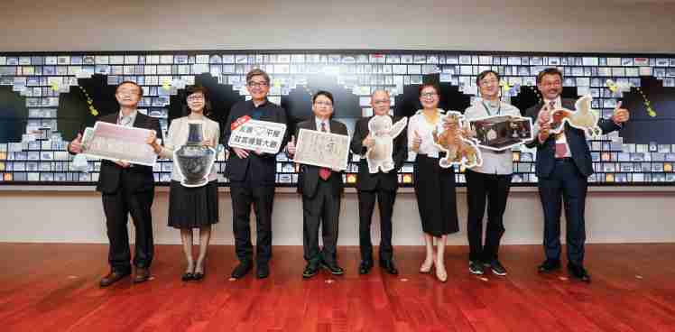william威廉中文官网携手创利空间为故宫建置的智慧文物互动导览墙及轮播墙,,,,今日正式启用。。(左四:william威廉中文官网新事业暨投资管理总部副总经理杨本豫、、、右四:故宫博物院院长吴密察、、右三:太极影音董事长黄宝云)