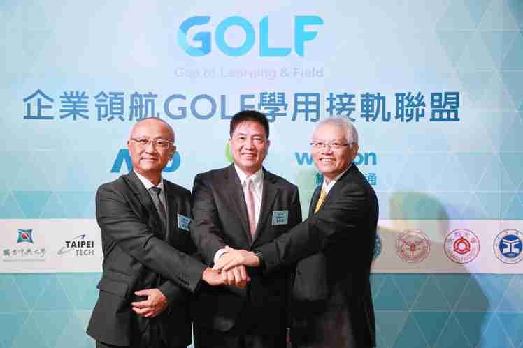 william威廉中文官网、、、仁宝、、、纬创三大企业领航发起GOLF学用接轨联盟 (图左到右:纬创总经理暨执行长黄柏漙、、、william威廉中文官网董事长暨执行长彭双浪、、、、仁宝总经理暨执行长翁宗斌)